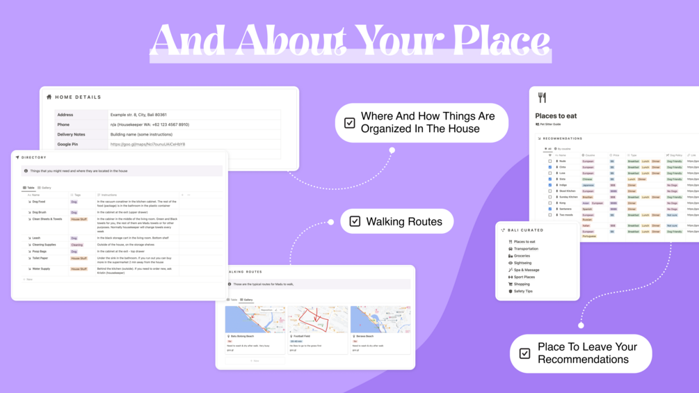 This template has everything to provide your pet sitters with the information they need and make your time away from home worry-free. Bullet-proofed with years of experience on both sides as a house sitter myself and now as a pet owner.